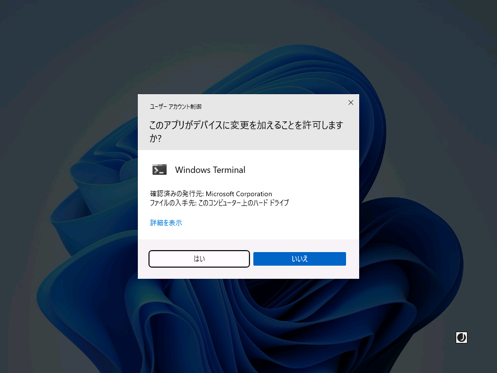 ※ 通常(管理者なし)のWindows ターミナル では、権限なしでエラーとなります。