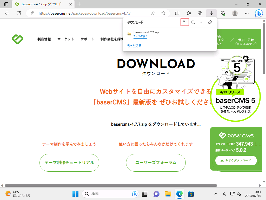 「baserCMS」のダウンロード
