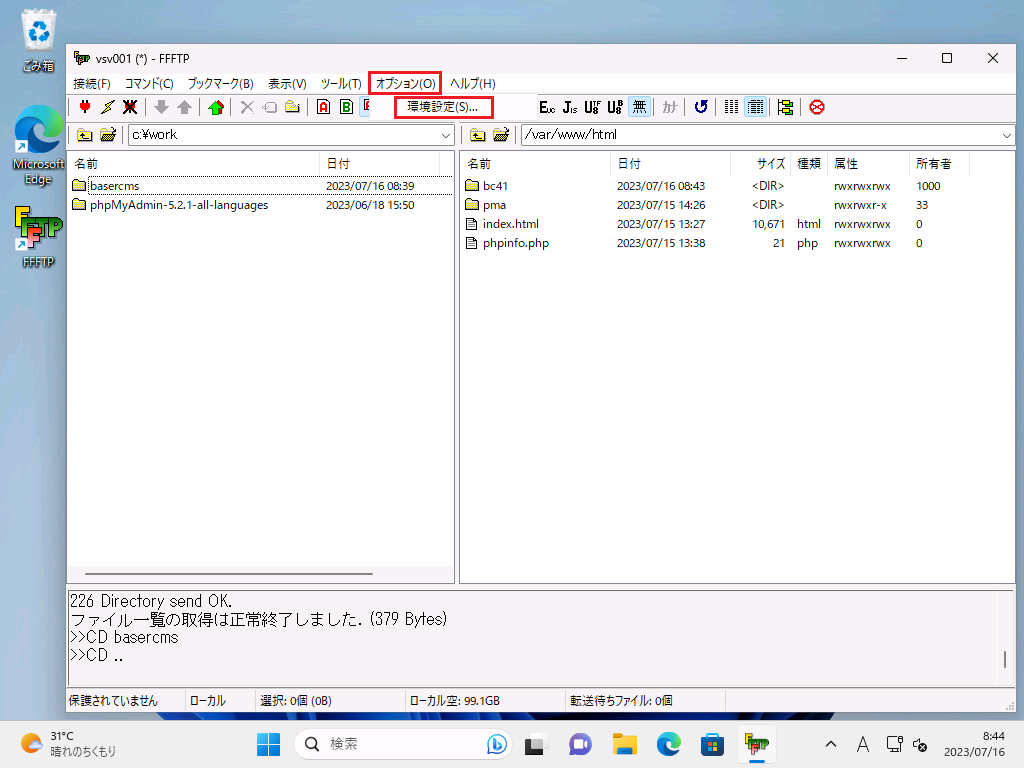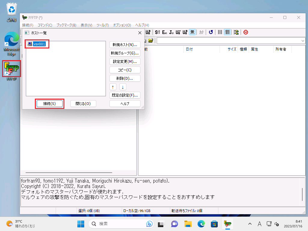 PCより、FFFTPを起動し、