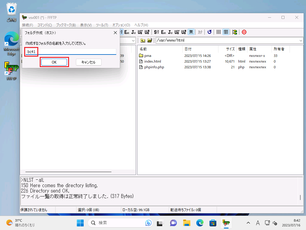 sudo mkdir /var/www/html/bc41 ← ディレクトリ作成