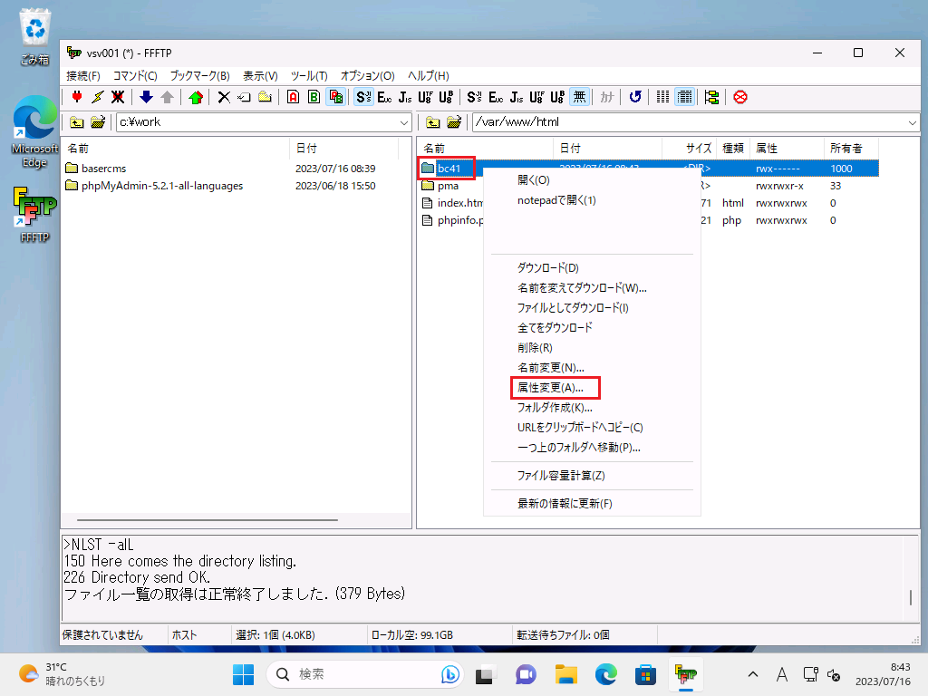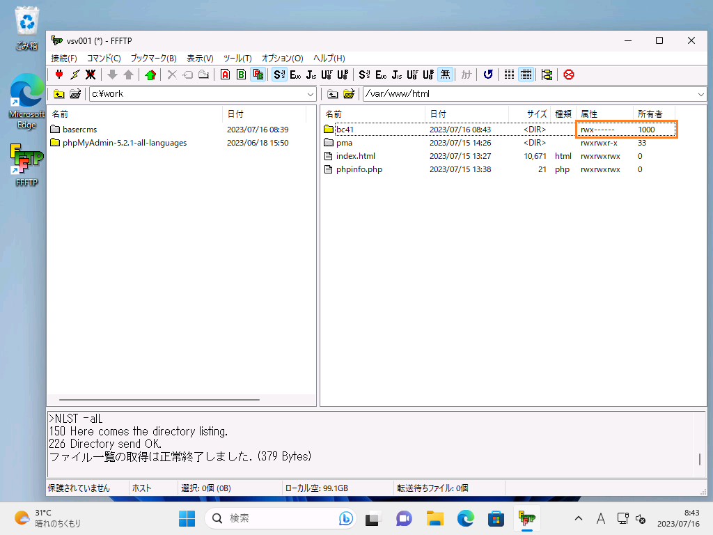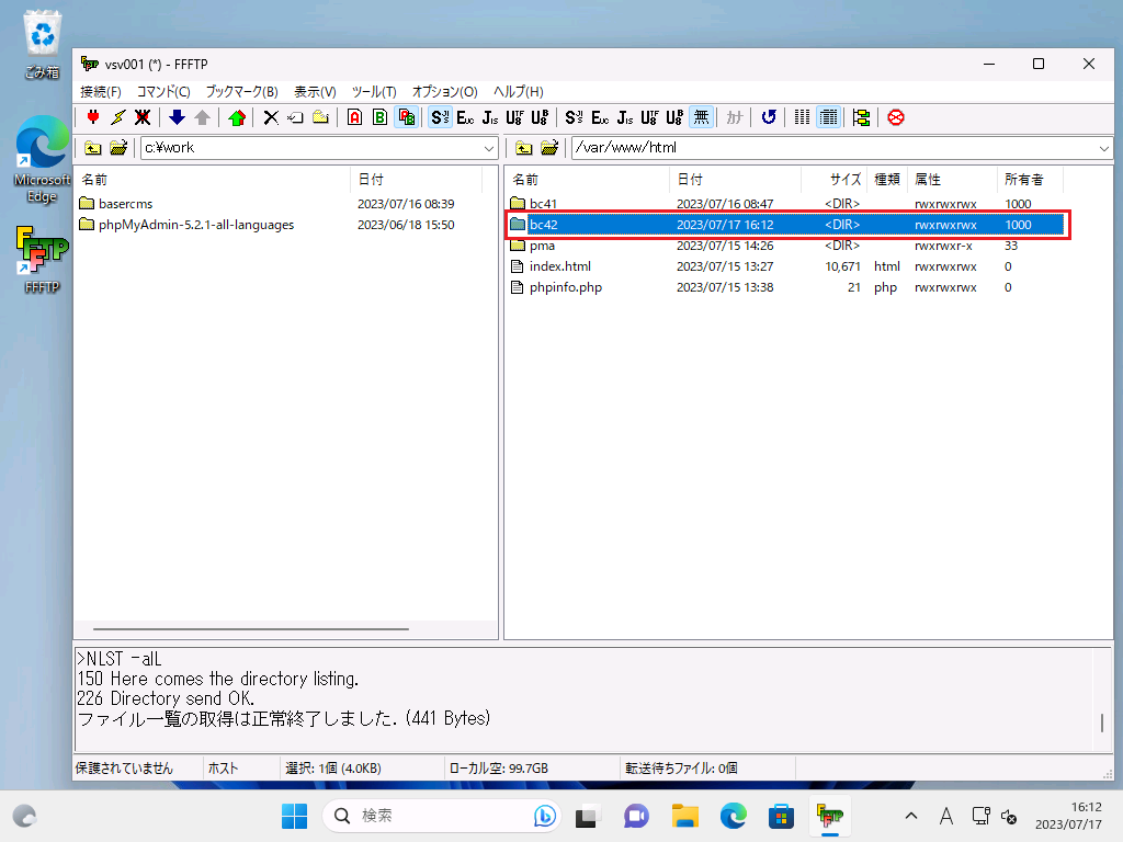 取り合えず、ディレクトリ「/ver/www/html/bc41/」と、その配下の
