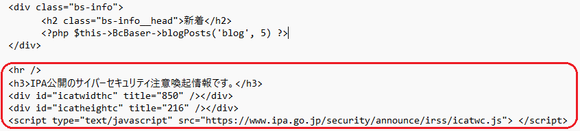 の後に、https://www.ipa.go.jp/security/vuln/icat.html ページの下記の個所のコードを手直しし、追記します。