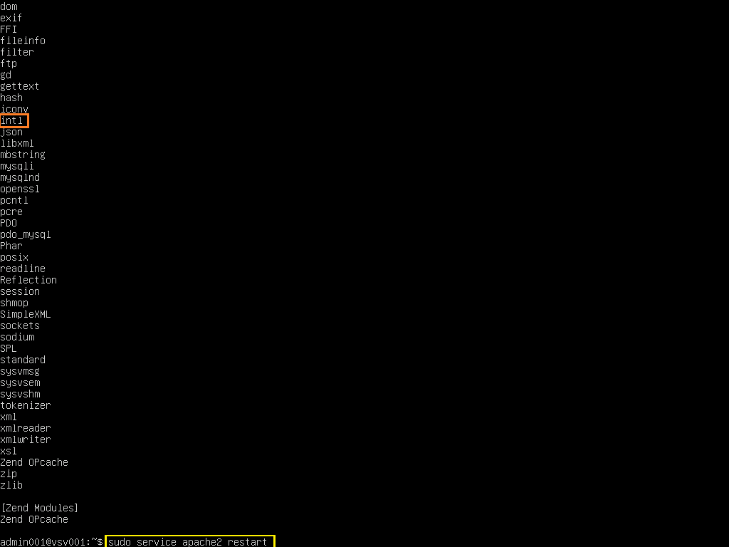 コマンド「php -m」を入力し、「Enter」キーを押す