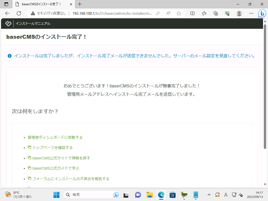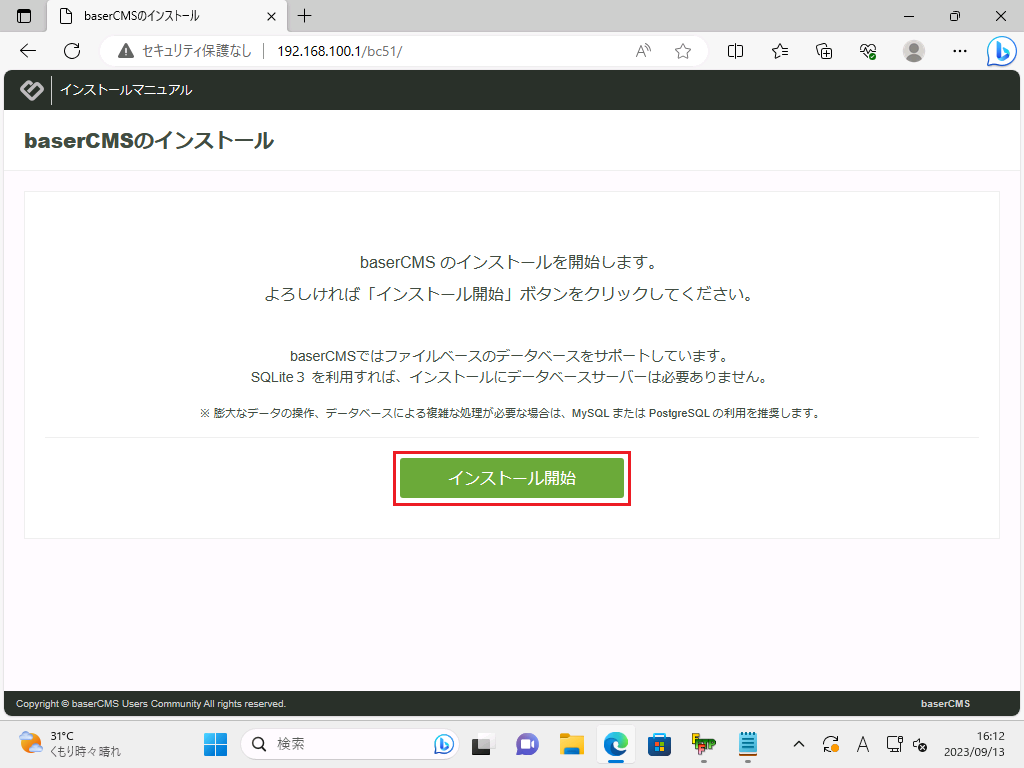 ② 【baserCMS4】テスト環境の構築②(インストール)