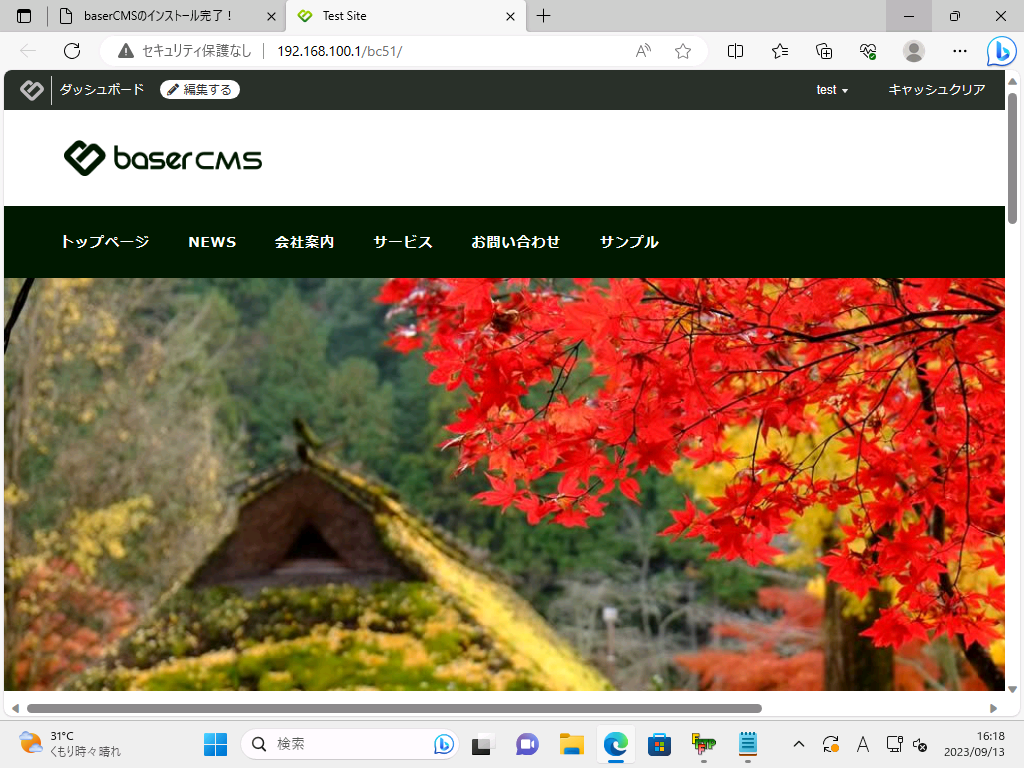 インストール後の画面は、「baserCMS4」と ぱっと見では余り変化が無い様です。