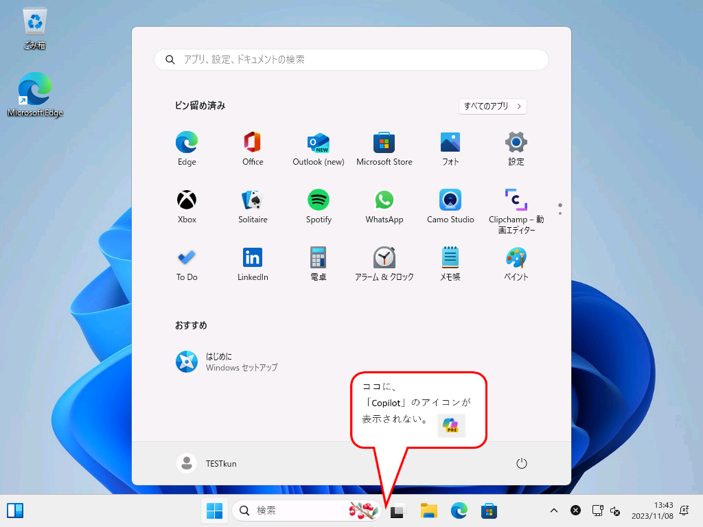 さて、「Ver.23H2」の目玉の一つは、「Copilot in Windows(Windows Copilot)」と思いますが、